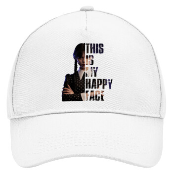 Wednesday, This is my happy face, Adult Baseball Cap, Drill, White (100% COTTON, ADULT, UNISEX, ONE SIZE)