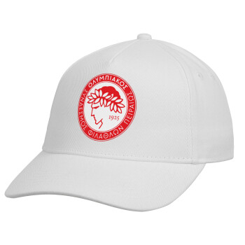 Ολυμπιακός, Adult Baseball Cap, Drill, White (100% COTTON, ADULT, UNISEX, ONE SIZE)