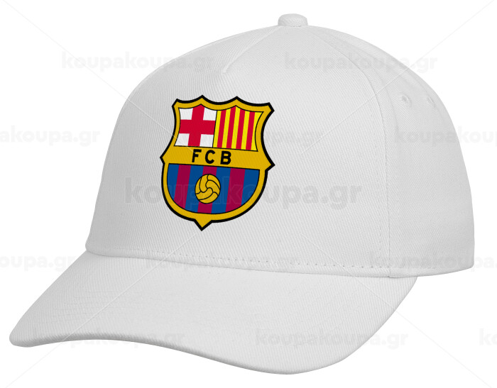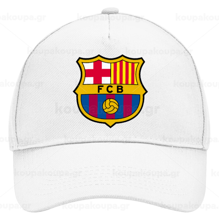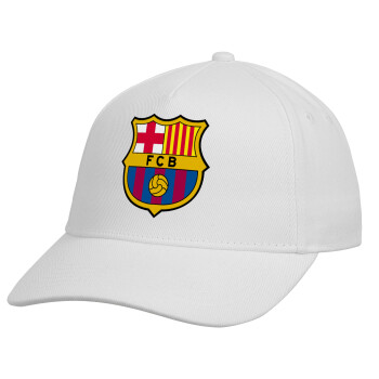 Barcelona FC, Adult Baseball Cap, Drill, White (100% COTTON, ADULT, UNISEX, ONE SIZE)