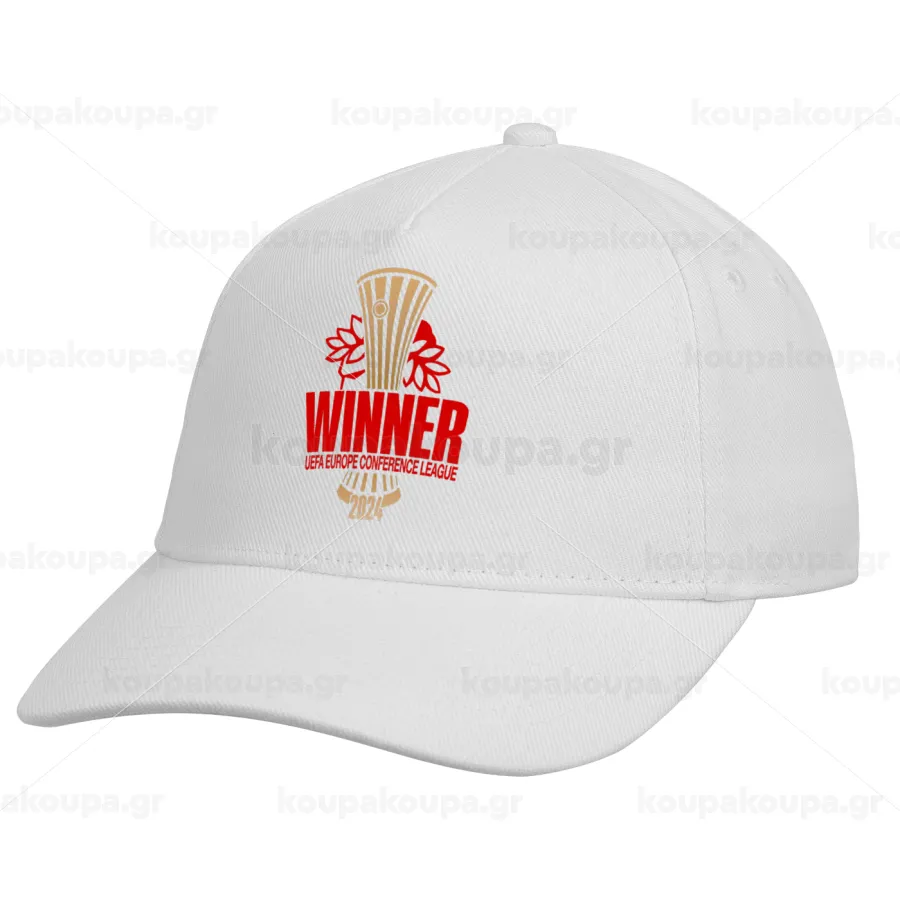 Europa Conference League WINNER, Adult Baseball Cap, Drill, White (100% COTTON, ADULT, UNISEX, ONE SIZE)