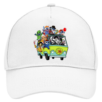 Stitch Halloween scooby car, Adult Baseball Cap, Drill, White (100% COTTON, ADULT, UNISEX, ONE SIZE)