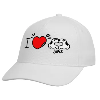 comics hands love, Adult Baseball Cap, Drill, White (100% COTTON, ADULT, UNISEX, ONE SIZE)