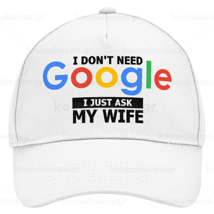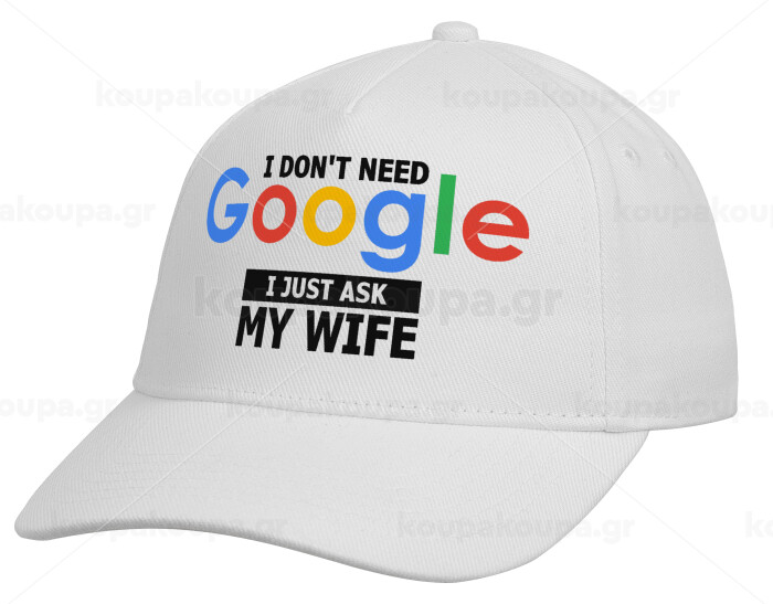 I don't need Google, just ask my WIFE, Adult Baseball Cap, Drill, White (100% COTTON, ADULT, UNISEX, ONE SIZE)