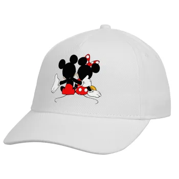 mickey and minnie hags, Adult Baseball Cap, Drill, White (100% COTTON, ADULT, UNISEX, ONE SIZE)