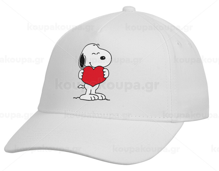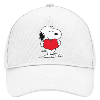 Snoopy takemy heart, Adult Baseball Cap, Drill, White (100% COTTON, ADULT, UNISEX, ONE SIZE)