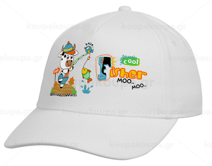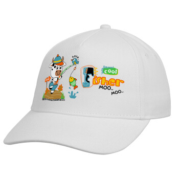 Kids Fisherman, Adult Baseball Cap, Drill, White (100% COTTON, ADULT, UNISEX, ONE SIZE)