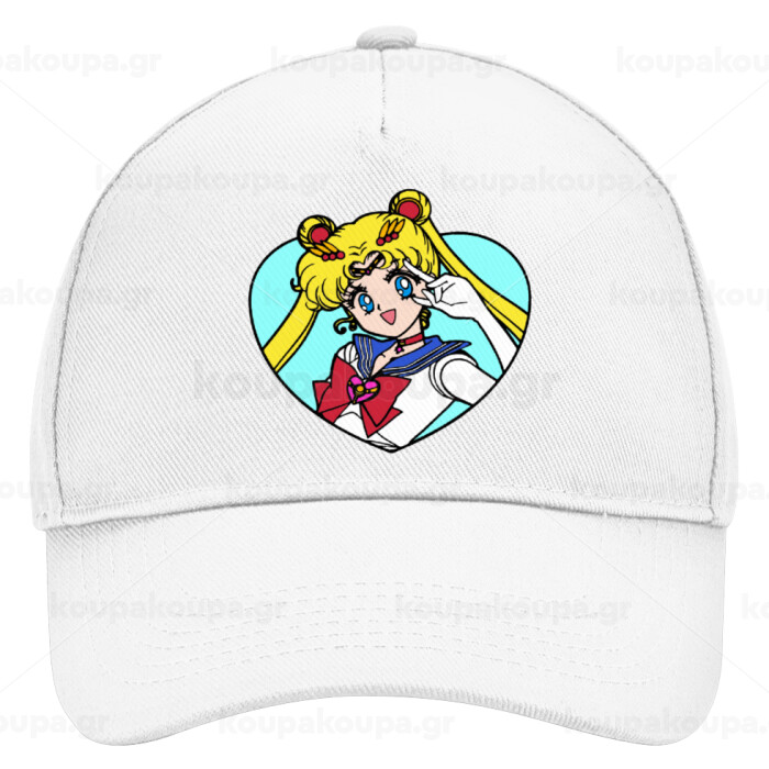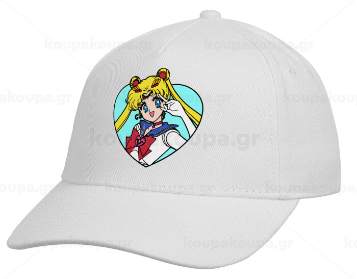 Sailor Moon star, Adult Baseball Cap, Drill, White (100% COTTON, ADULT, UNISEX, ONE SIZE)