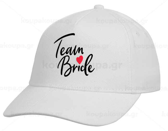 Team Bride red heart, Adult Baseball Cap, Drill, White (100% COTTON, ADULT, UNISEX, ONE SIZE)