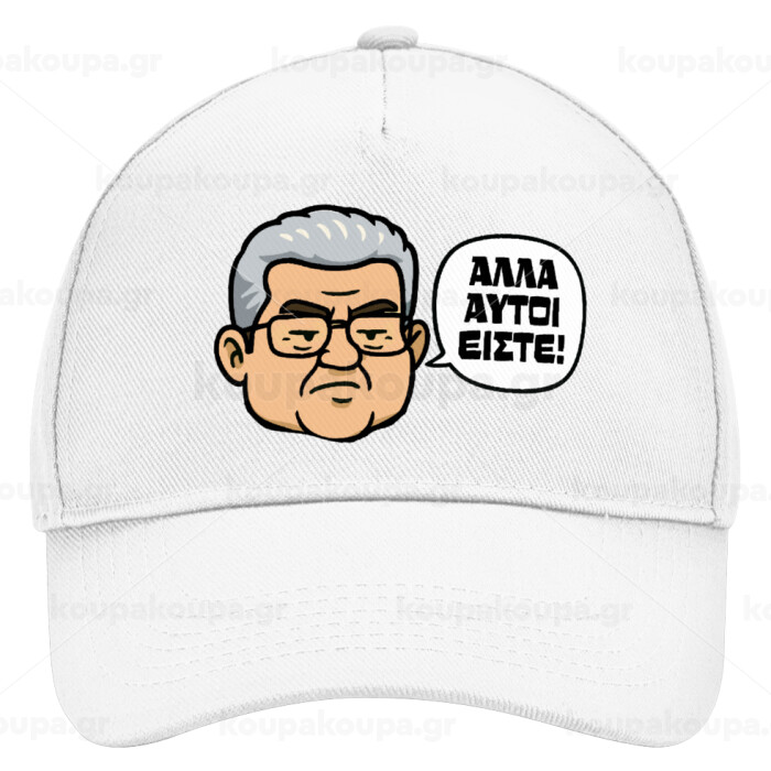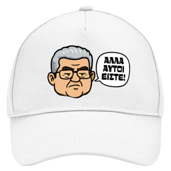 Κουτσούμπας, "Αλλά αυτοί είστε!", Adult Baseball Cap, Drill, White (100% COTTON, ADULT, UNISEX, ONE SIZE)