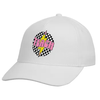 Teach, Adult Baseball Cap, Drill, White (100% COTTON, ADULT, UNISEX, ONE SIZE)
