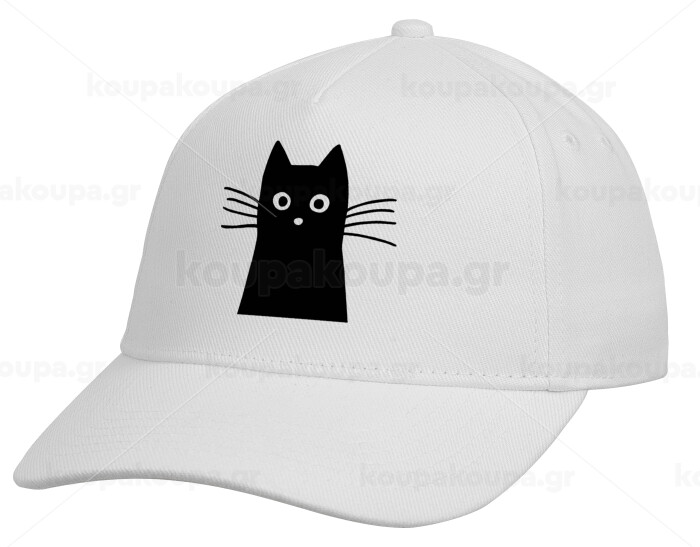 Black Cat, Adult Baseball Cap, Drill, White (100% COTTON, ADULT, UNISEX, ONE SIZE)