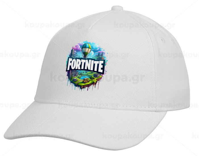 Fortnite land, Adult Baseball Cap, Drill, White (100% COTTON, ADULT, UNISEX, ONE SIZE)