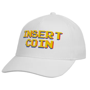 Insert coin!!!, Adult Baseball Cap, Drill, White (100% COTTON, ADULT, UNISEX, ONE SIZE)