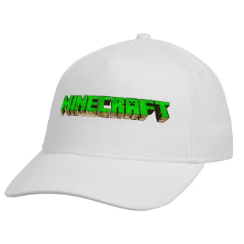 Minecraft logo green, Adult Baseball Cap, Drill, White (100% COTTON, ADULT, UNISEX, ONE SIZE)