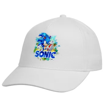 Sonic, Adult Baseball Cap, Drill, White (100% COTTON, ADULT, UNISEX, ONE SIZE)