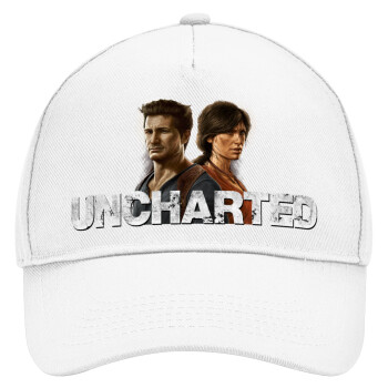 Uncharted, Adult Baseball Cap, Drill, White (100% COTTON, ADULT, UNISEX, ONE SIZE)