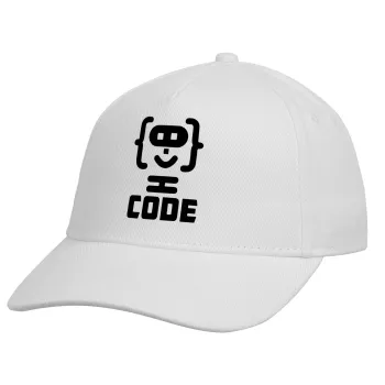 Code Heroes symbol, Adult Baseball Cap, Drill, White (100% COTTON, ADULT, UNISEX, ONE SIZE)