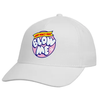 Why Don't You Blow Me Funny, Adult Baseball Cap, Drill, White (100% COTTON, ADULT, UNISEX, ONE SIZE)