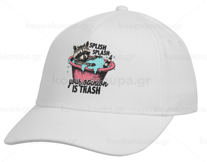 Splish splash your opinion is trash, Adult Baseball Cap, Drill, White (100% COTTON, ADULT, UNISEX, ONE SIZE)