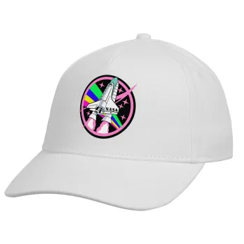 NASA pink, Adult Baseball Cap, Drill, White (100% COTTON, ADULT, UNISEX, ONE SIZE)