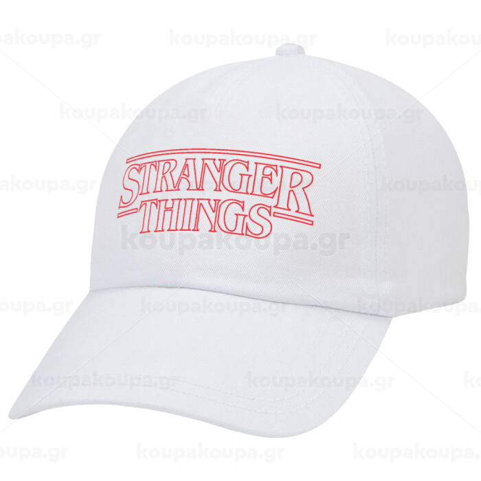 Stranger Things Logo, Adult Baseball Cap White 5-panel (POLYESTER, ADULT, UNISEX, ONE SIZE)