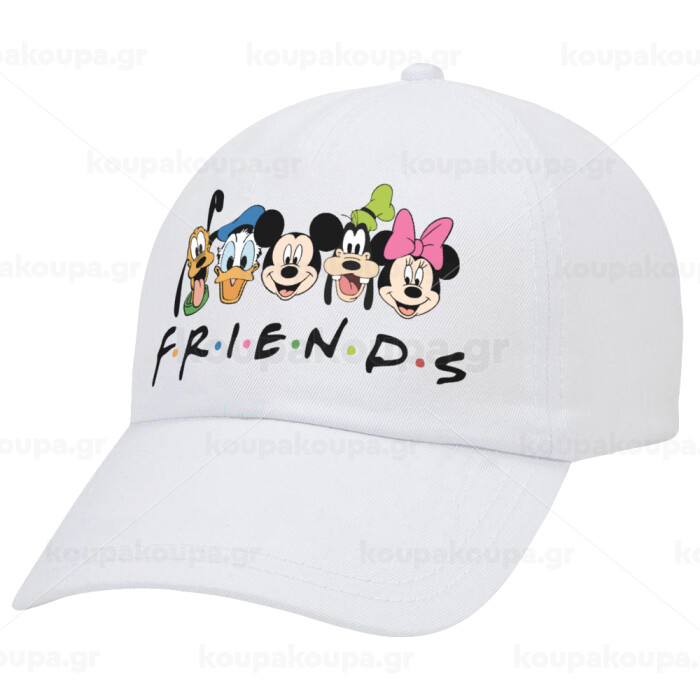 Friends characters, Adult Baseball Cap White 5-panel (POLYESTER, ADULT, UNISEX, ONE SIZE)