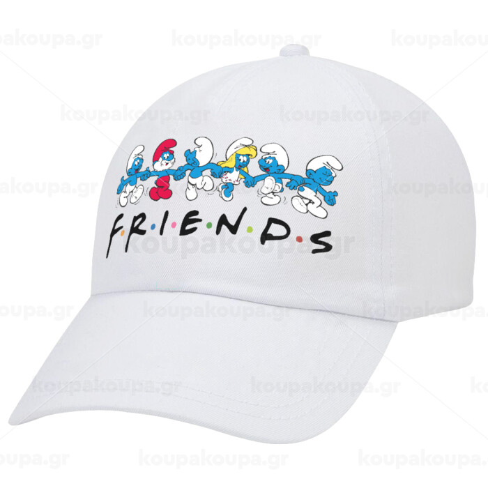 Friends Smurfs, Adult Baseball Cap White 5-panel (POLYESTER, ADULT, UNISEX, ONE SIZE)