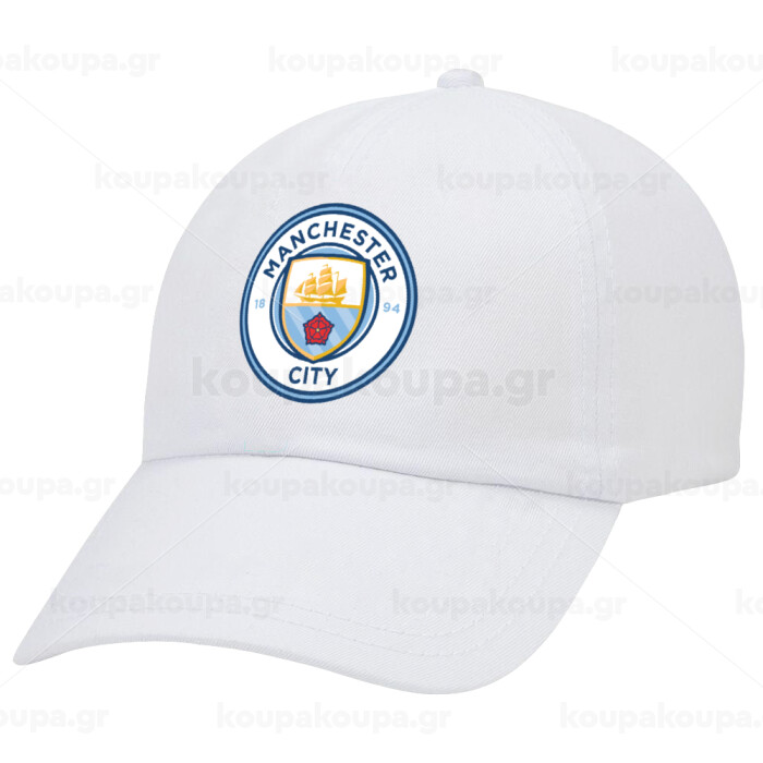 Manchester City FC , Adult Baseball Cap White 5-panel (POLYESTER, ADULT, UNISEX, ONE SIZE)