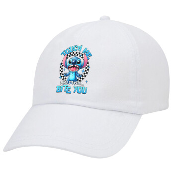 Stitch Touch Me And I Will Bite You, Adult Baseball Cap White 5-panel (POLYESTER, ADULT, UNISEX, ONE SIZE)