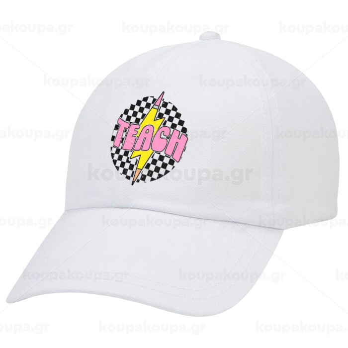 Teach, Adult Baseball Cap White 5-panel (POLYESTER, ADULT, UNISEX, ONE SIZE)