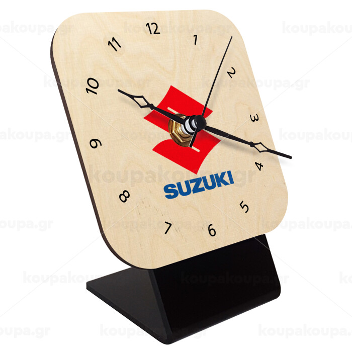 SUZUKI, Quartz Table clock in natural wood (10cm)