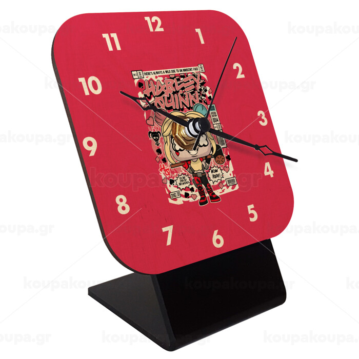Harley Quinn (Χάρλεϊ Κουίν), Quartz Table clock in natural wood (10cm)