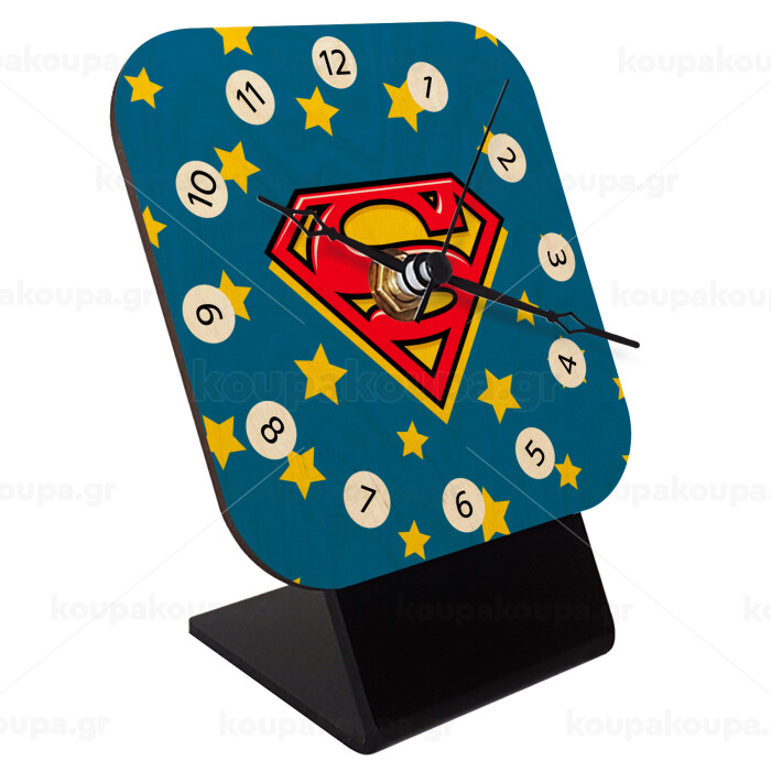 Superman Blue, Quartz Table clock in natural wood (10cm)