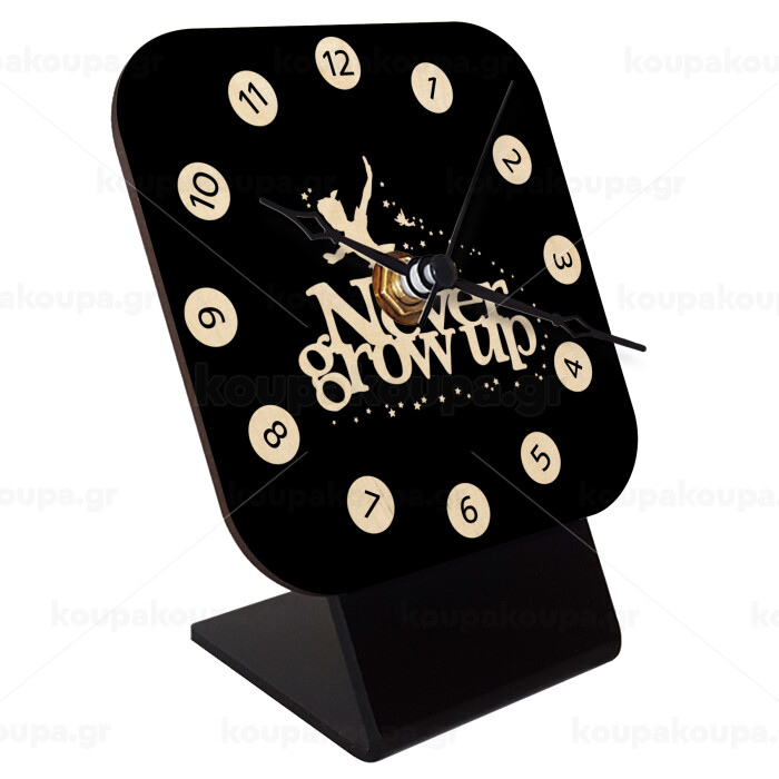Peter pan, Never Grow UP, Quartz Table clock in natural wood (10cm)