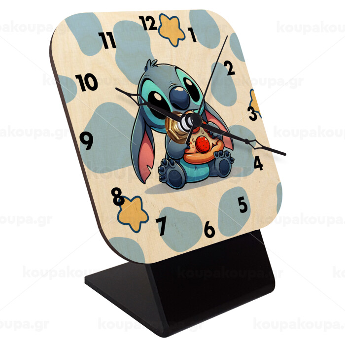 Stitch Pizza, Quartz Table clock in natural wood (10cm)