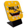 Quartz table clock made of wood. The set includes the clock and its base, the mechanism, and the installation instructions.