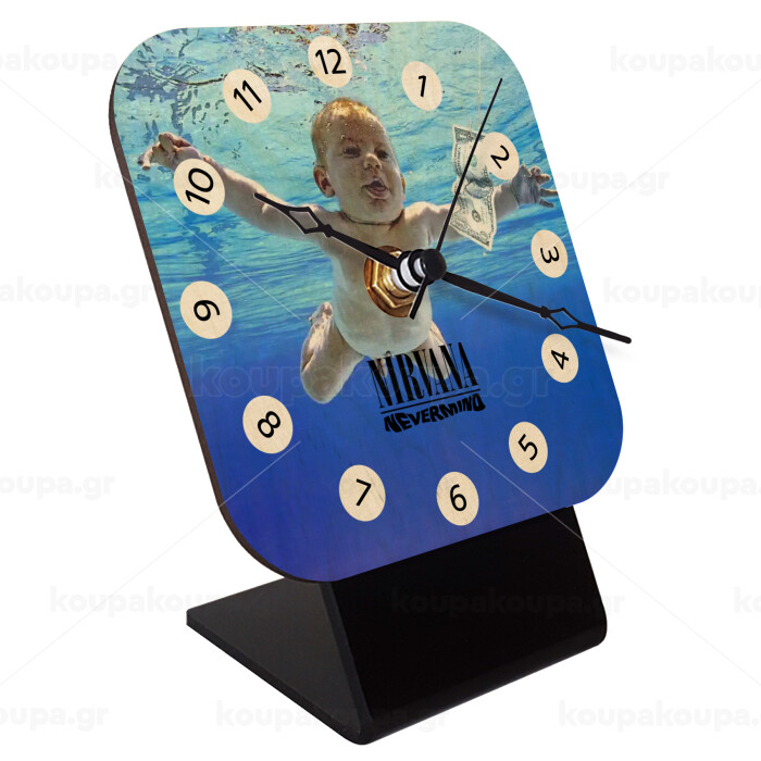 Nirvana nevermind, Quartz Table clock in natural wood (10cm)