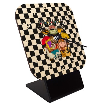 Quartz table clock made of wood. The set includes the clock and its base, the mechanism, and the installation instructions.