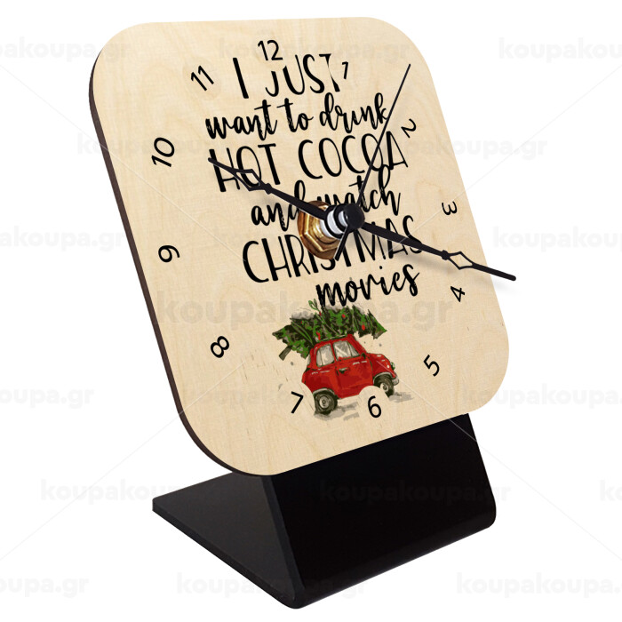 I just want to drink hot cocoa and watch christmas movies mini cooper, Quartz Table clock in natural wood (10cm)