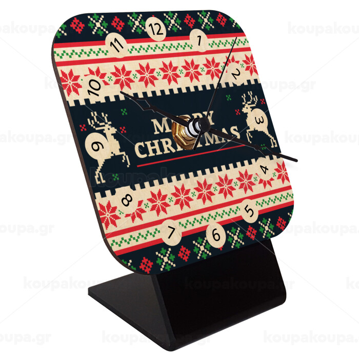 Merry Christmas Vintage, Quartz Table clock in natural wood (10cm)