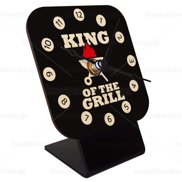 KING of the Grill, Quartz Table clock in natural wood (10cm)
