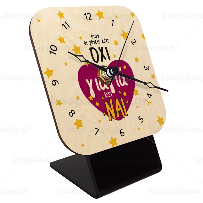 Όταν οι γονείς λένε ΟΧΙ, η γιαγιά λέει ΝΑΙ, Quartz Table clock in natural wood (10cm)