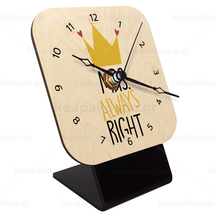 Mrs "Always" right, Quartz Table clock in natural wood (10cm)