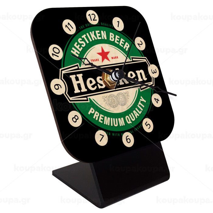 Hestiken Beer, Quartz Table clock in natural wood (10cm)