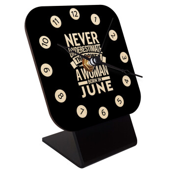 Never Underestimate the poer of a Woman born in..., Quartz Table clock in natural wood (10cm)