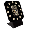 Quartz table clock made of wood. The set includes the clock and its base, the mechanism, and the installation instructions.