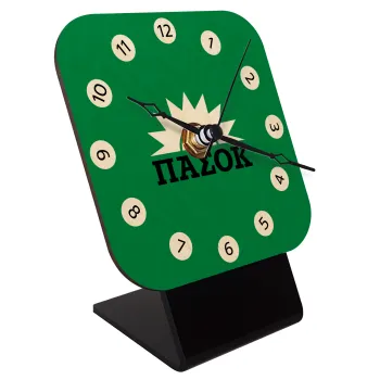 PASOK green, Quartz Table clock in natural wood (10cm)