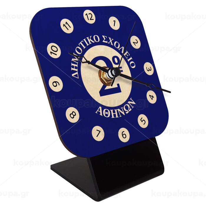 Έμβλημα Σχολικό μπλε, Quartz Table clock in natural wood (10cm)