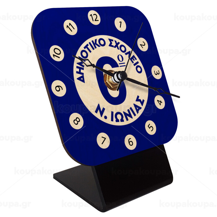 Σχολικό σήμα κλασικό μπλε, Quartz Table clock in natural wood (10cm)