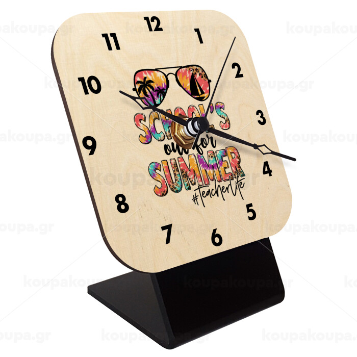 School's Out For Summer Teacher Life, Quartz Table clock in natural wood (10cm)